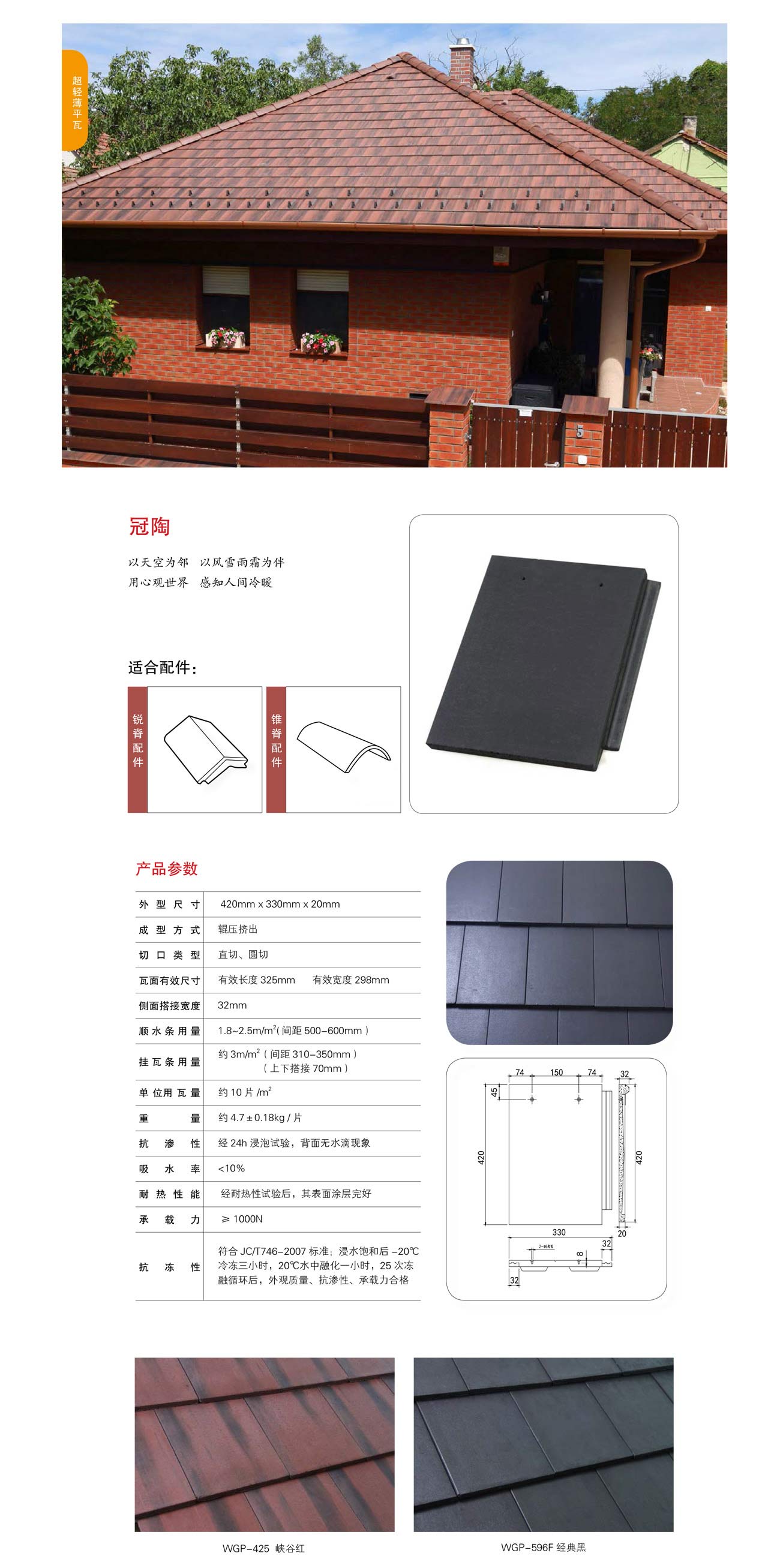 當前位置:網(wǎng)站首頁>>產(chǎn)品介紹>>瓦德彩色混凝土瓦>>冠系列輕薄平瓦