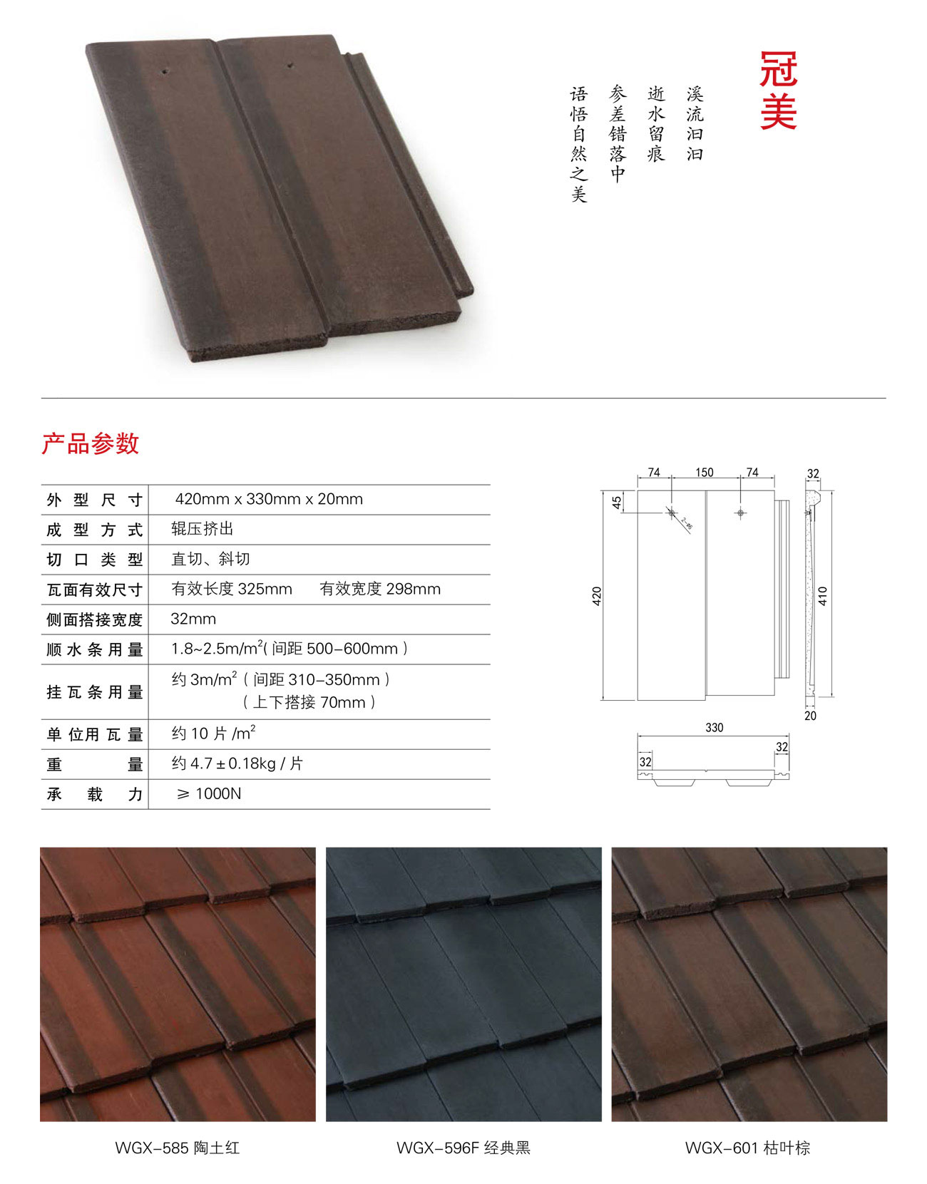 當(dāng)前位置:網(wǎng)站首頁>>產(chǎn)品介紹>>瓦德彩色混凝土瓦>>冠系列輕薄平瓦